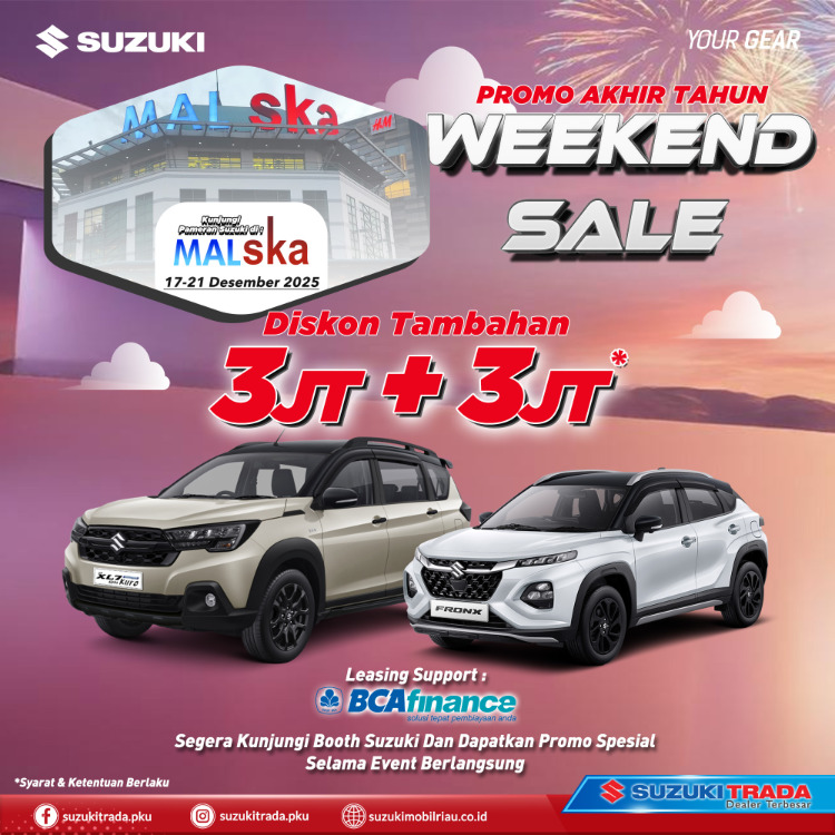 Yuk, manfaatkan PROMO AKHIR TAHUN – WEEKEND SALE dengan diskon tambahan hingga 3 JT + 3 JT* khusus selama event berlangsung di Mall SKA!