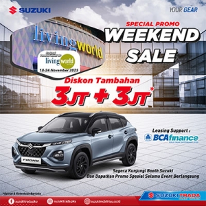 Suzuki Trada Pekanbaru resmi menghadirkan Special Promo Weekend Sale di Living World Pekanbaru pada 18–24 November 2025, menawarkan diskon tambahan hingga 3 juta + 3 juta serta berbagai keuntungan menarik selama event berlangsung. Pengunjung dapat langsung mengunjungi booth Suzuki untuk mendapatkan promo spesial, konsultasi pembiayaan dengan dukungan BCA Finance, serta melihat langsung berbagai unit unggulan seperti Suzuki Fronx dan model lainnya. Event ini menjadi kesempatan terbaik bagi konsumen untuk mendapatkan harga terbaik, penawaran kredit ringan, dan bonus menarik selama periode promo.